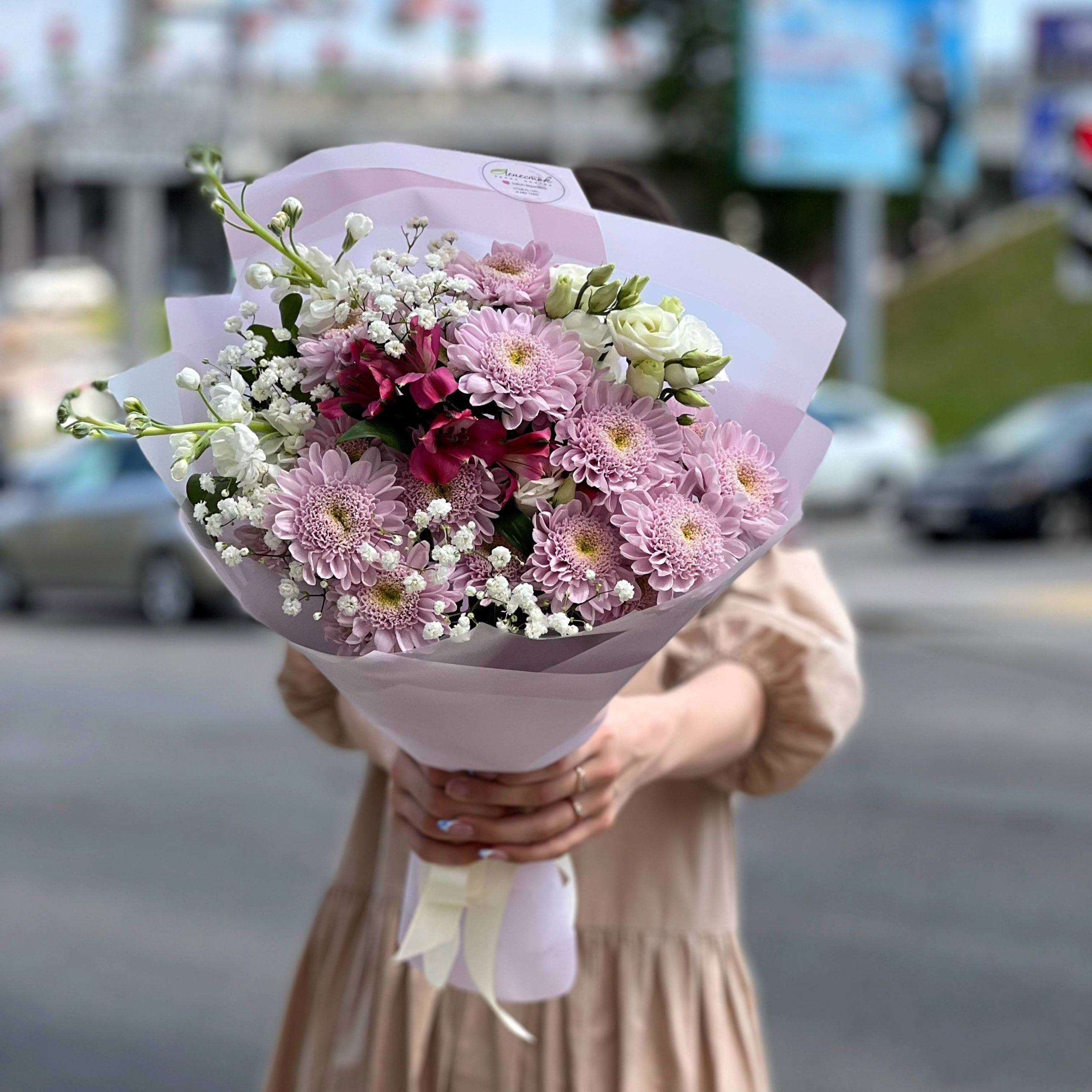 Очаровательный букет из хризантем и маттиолы в Галиче